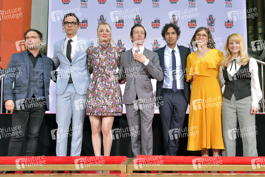 Johnny Galecki, Jim Parsons, Kaley Cuoco, Simon Helberg, Kunal Nayyar, Mayim Bialik und Melissa Rauch bei der Handprints Ceremony am TCL Chinese Theatre Hollywood. Los Angeles, 01.05.2019