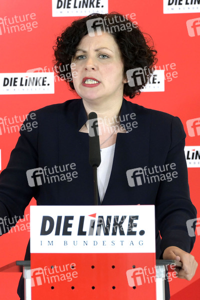 Politik, Pressekonferenz, Pressestatement, PK, Reichstag, Deutscher Bundestag, Demokratie, Abgeordnete, Parlament, Parlamentsgebäude, Volksvertreter, MdB, Mitglied des Bundestages, Politikerin, Die Linke, Fraktionsvorsitzende der Linken im Bundestag