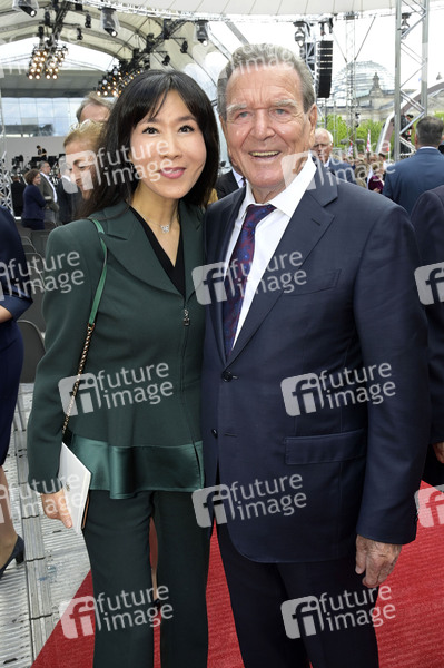 Gerhard Schröder mit Ehefrau So-yeon Schröder-Kim beim Staatsakt zu 75 Jahre Grundgesetz auf dem Forum zwischen Bundestag und Kanzleramt. Berlin, 23.05.2024