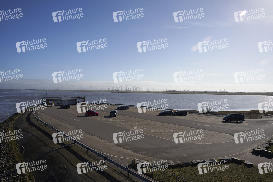 Das Eider-Sperrweg an der Mündung der Eider in die Nordsee. Wesselburenerkoog, 27.02.2021