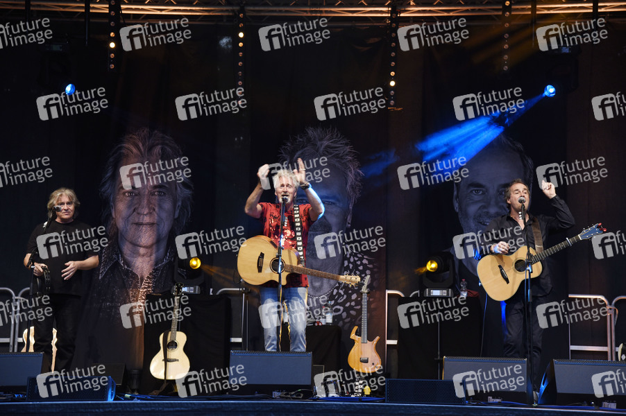 Peter Howarth, Pete Lincoln und Mick Wilson von Frontm3n live beim Open Air Konzert im Kurpark in Bad Aibling. 13.08.2021