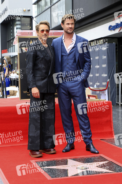 Robert Downey Jr. und Chris Hemsworth bei der Zeremonie zur Verleihung von einem Stern an Chris Hemsworth auf dem Hollywood Walk of Fame. Los Angeles, 23.05.2024