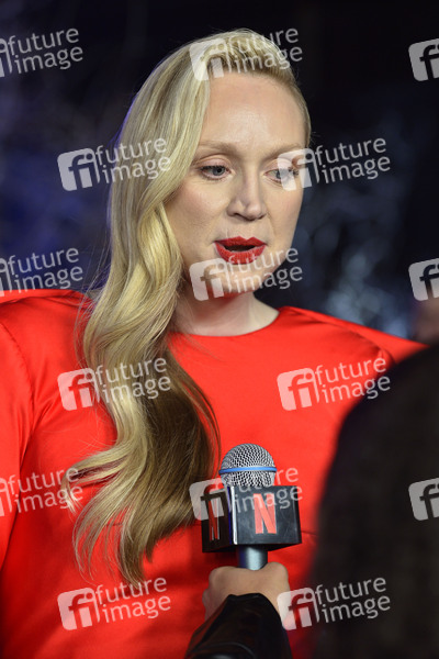 Larissa Weems in 'Wednesday', Brienne of Tarth / Brienne von Tarth in 'Game of Thrones', Commander Lyme in 'The Hunger Games 4', Captain Phasma in 'Star Wars: Episode VII & VIII', Miranda Hilmarson in 'Top of the Lake', Prominenz, Celebrity, Celebrities, Premiere, Serienpremiere, TV-Serie, Fernsehserie, Streaming, Video-on-Demand, TV, Fernsehen, Unterhaltung, Entertainment, Kultur, Ankunft, Schauapielerin