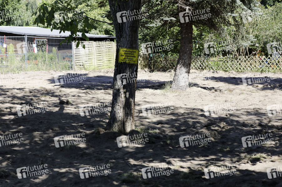 Garten des Verdächtigen Christian Brückner im Vermisstenfall Maddie McCann, nachdem die Polizei alles umgegraben hat und einen Kellerraum gefunden hat. Seelze, 30.07.2020