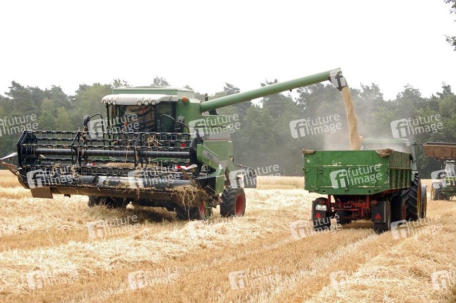 Feld, Acker, Getreide, Mähdrescher, Landwirtschaft, Traktor, Trecker, Anhänger