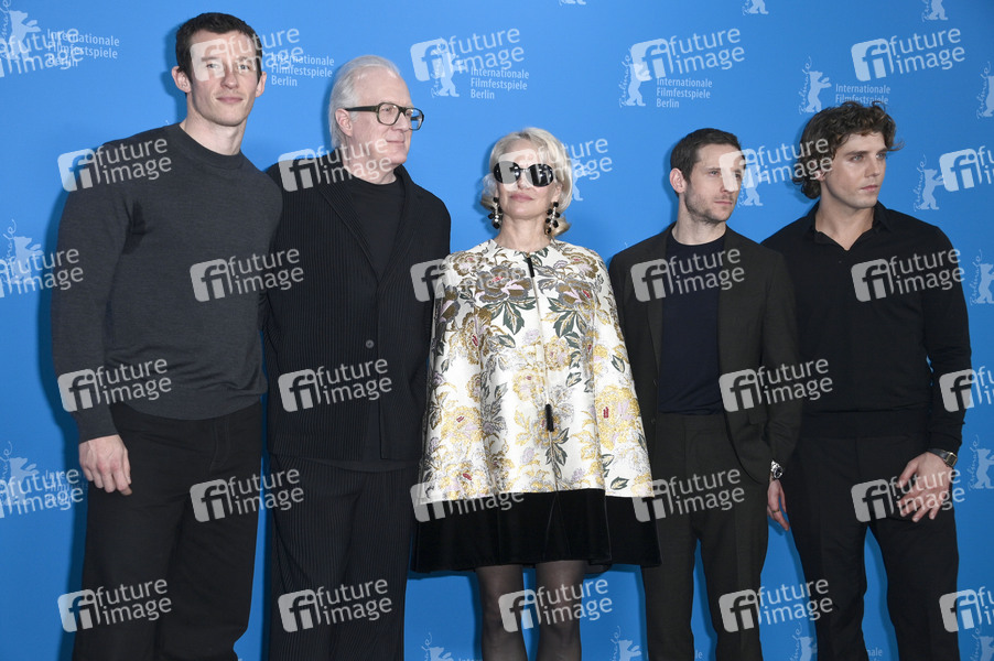Callum Turner, Tracy Letts, Pamela Anderson, Jamie Bell und Lukas Gage beim Photocall zum Kinofilm 'Rosebush Pruning' auf der Berlinale 2026 / 76. Internationale Filmfestspiele Berlin im Hotel Grand Hyatt. Berlin, 14.02.2026