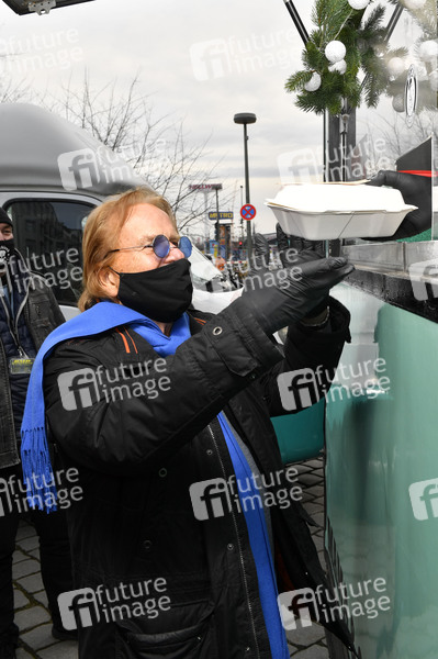 Frank Zander verteilt Essen und Geschenke an Obdachlose und Bedürftige aus dem Food Truck. Berlin, 15.12.2020