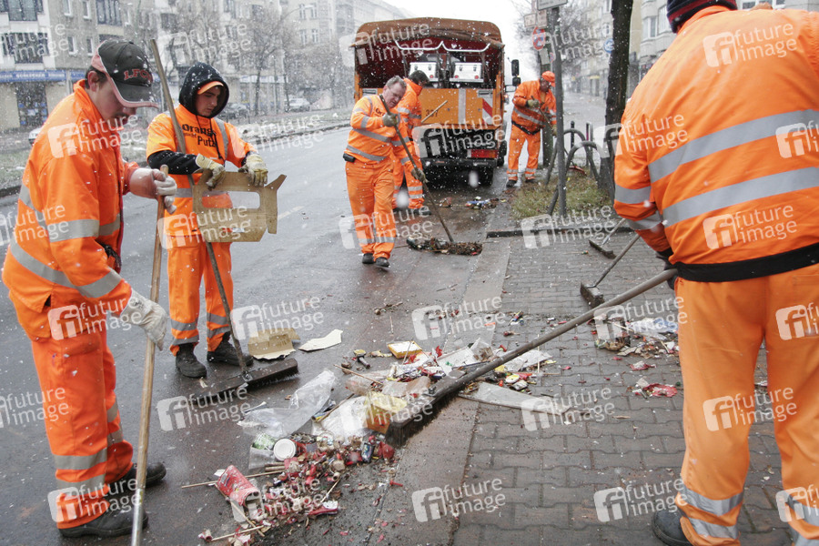 Silvester, Neujahr, Müll, Müllmann, Müllmänner, Müllabfuhr, Aufräumen, Stadtreinigung, Strassenreinigung
