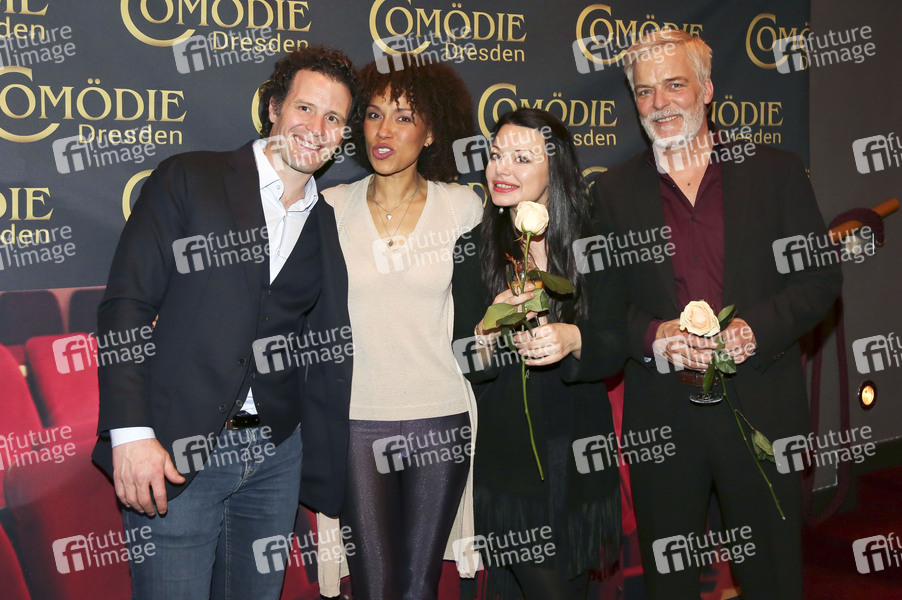 Tristan Petitgirard, Dominique Siassia, Cosma Shiva Hagen und Stephan Schill bei der Premiere des Theaterstücks 'Sternstunden' in der Comödie Dresden. Dresden, 06.03.2020