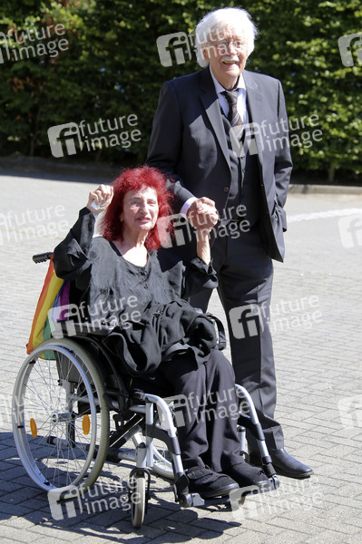 Peggy Parnass und Carlo von Tiedemann bei der Trauerfeier für Uwe Seeler im Volksparkstadion. Hamburg, 10.08.2022
