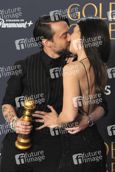 Kieran Culkin und Ehefrau Jazz Charton mit dem Preis für den besten Nebendarsteller in 'A Real Pain' bei der Verleihung der 82. Golden Globe Awards 2025 im Beverly Hilton Hotel. Beverly Hills, 05.01.2025