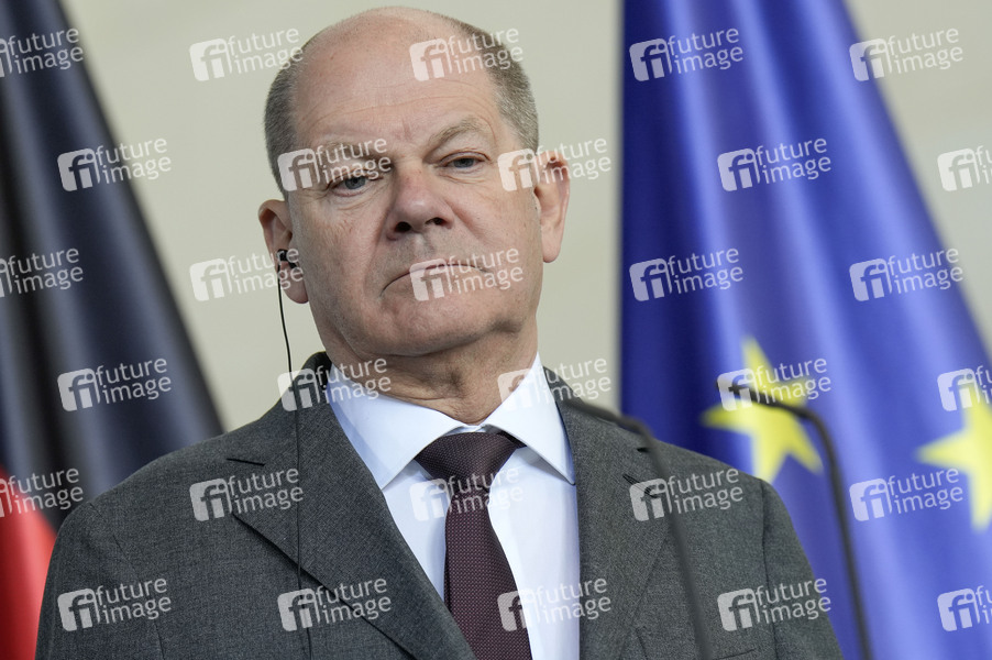 Olaf Scholz beim Empfang des Präsidenten von Aserbaidschan zu einem Gespräch mit anschließendem Pressestatement im Bundeskanzleramt. Berlin, 26.04.2024