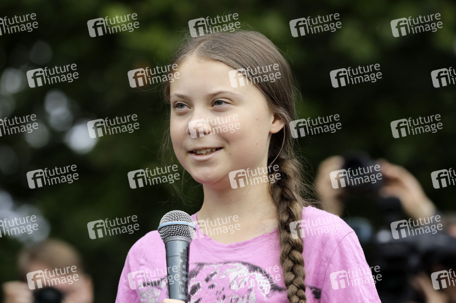 Greta Thunberg bei der 'Fridays for Future' Schülerdemonstration gegen die Klimapolitik im Invalidenpark. Berlin, 19.07.2019