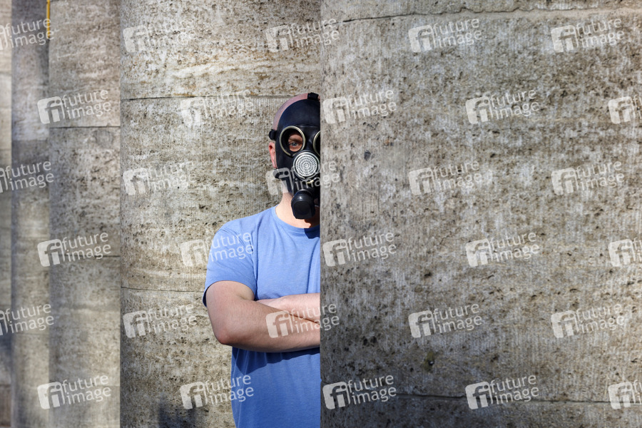 Behelfsmaske, Behelfsmasken, DDR, Gasmaske, improvisierte Maske, improvisierte Masken, Corona-Style, Coronastyle, Atemschutz, Atemschutzmaske, Virenschutz, Atemschutzmasken, Maske, Masken, Mundschutz, Mund-Schutz, Mundschutzpflicht, Mundschutz-Pflicht, Mund-Nase-Schutz, Mund-Nasen-Schutz, MNS, Ausbreitung, Maskenzwang, Maskenpflicht, Infektionsgefahr der Öffentlichkeit, Lock Down, Lockdown, Öffentlichkeit, Eindämmung, Seucheneindämmung, anstecken, infizieren, Vorbeugung, Prävention, schützen, Schutz, Ausgangssperre, Ausgangssperren, Ausgangsverbot, Ausgangsverbote, Kontaktverbot, Kontaktverbote, Versammlungsfreiheit, Versammlungsverbot, Abriegelungen, Ansammlungsverbote, Ansammlungsverbot, Ausgangseinschränkung, Ausgangsbeschränkung, Ausgangsbeschränkungen, Kontaktsperre, Bewegungsfreiheit, Grundrechte, Einschränkung, Verzicht, Seuchenschutz, Corona-Schutz, Virus, Viren, Corona, Sars-CoV-2, Covid-19, Coronavirus, Coronaviren, Corona-Virus, Corona-Viren, Ansteckung, Ansteckungsgefahr, Epidemie, Pandemie, Infektion, Infektionen, Ansteckungsangst, Seuche, anstecken, Corona-Symptome, CoronaApp, Corona App, Symptom, Symptome, Krankheit, infiziert, infizieren, Vorbeugung, Prävention, schützen, Schutz, Notstand, Notstandsgesetze, Social Distancing, zu Hause bleiben, Selbstisolation, soziale Kontakte, Risiko, Risikobewertung, Maßnahmen, Neuansteckungen, Ansteckung, Coronakrise, Corona-Krise, Coronamaßnahmen, Corona-Infektion, Corona-Infektionen, Corona-Schutz, menschenleer, ausgestorben, Endzeitstimmung, flatten the curve, Notstand, Notstandsgesetze, Marial Law, Notfall, Ausnahmesituation, Ausnahmezustand, Zeitgeschichte, Übertragung, Erreger, Prävention, #stay home, #stayhome, Corona-Regeln, Corona-Maßnahmen, Schutzmaske tragen, Schutzmasken, Selbstschutz, Tröpfchen-Infektion, Schutzkleidung, Symbolfoto, Symbolbild