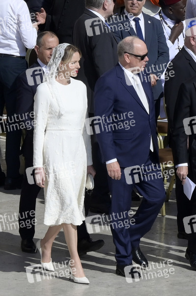 Fürst Albert II. von Monaco mit Ehefrau Charlene bei der Amtseinführung von Papst Leo XIV. auf dem Petersplatz. Vatikanstadt, 18.05.2025