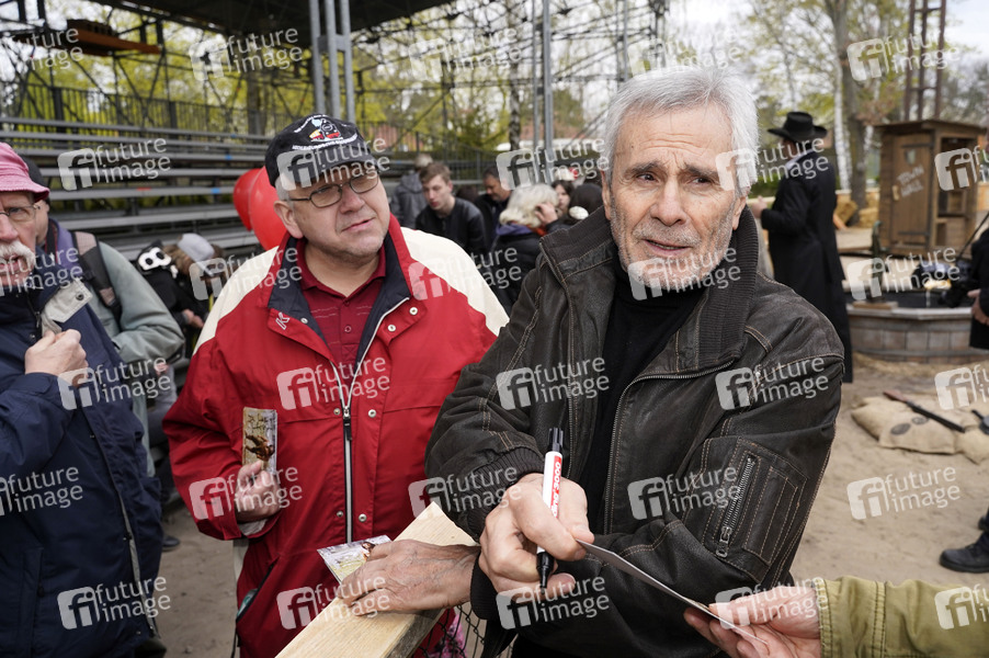 Gojko Mitic bei der Premiere der Westernshow 'Tierisch verdreht' beim Saisonstart im Filmpark Babelsberg. Potsdam, 13.04.2019