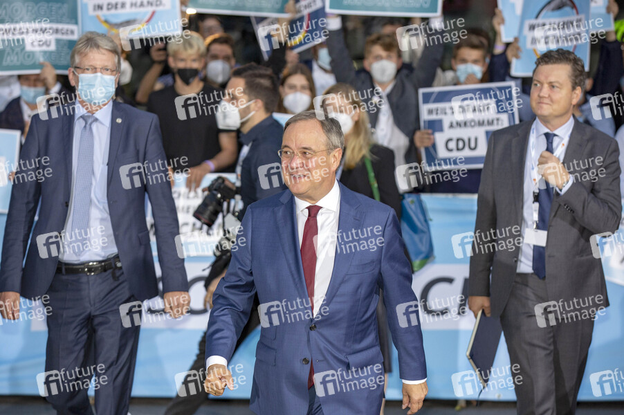 Armin Laschet beim 'Triell - Dreikampf ums Kanzleramt' von ARD und ZDF mit den Kanzlerkandidaten im Studio Berlin-Adlershof. Berlin, 12.09.2021