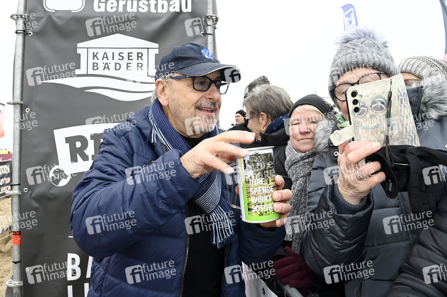 Wolfgang Stumph beim 9. Baltic Lights 2025 Charity-Schlittenhunderennen zu Gunsten der Welthungerhilfe zwischen der Seebrücke Ahlbeck und der Seebrücke Heringsdorf. Heringsdorf, 01.03.2025