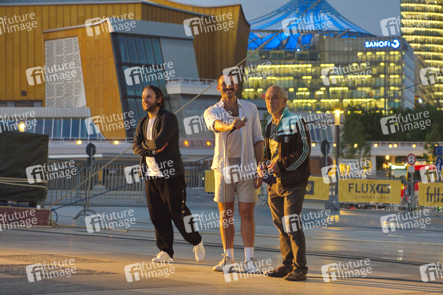 Dimitrij Schaad, Marcel Danner und Dani Levy bei der Open-Air-Premiere des Kinofilms 'Die Känguru-Chroniken Reloaded 3D' im Arte Sommerkino Kulturforum. Berlin, 16.06.2020