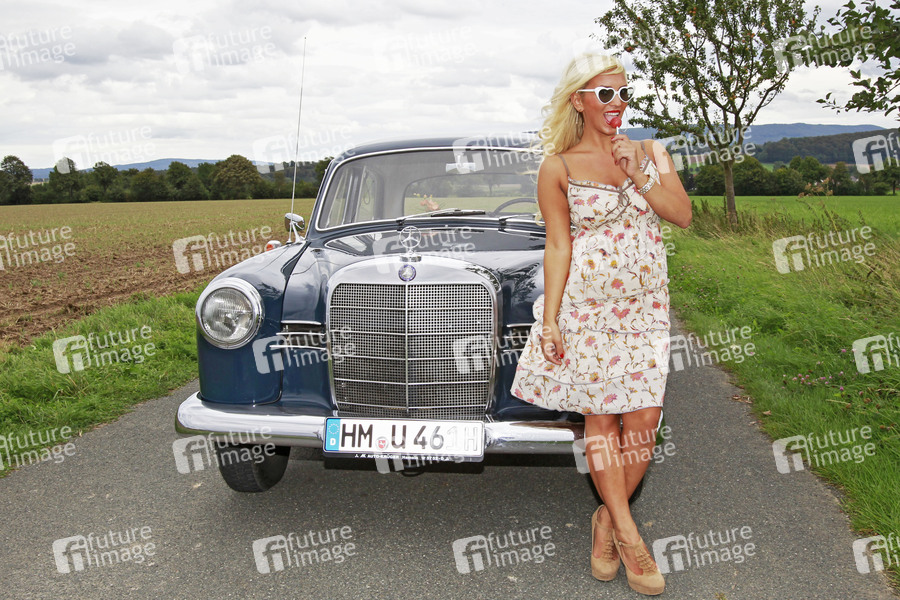 SOLsnap Cover-Model September 2011, Auto, Oldtimer, Mercedes-Benz Ponton 190 b Baujahr 1961, Erotik, sexy, Lolita, Sonnenbrille, Lolli, Lutscher, Sommerkleid