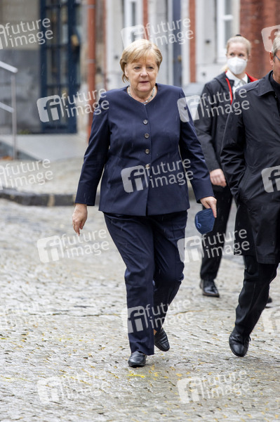 Angela Merkel und Karl Jüsten beim ökumenischen Gottesdienst für die Opfer der Flutkatastrophe im Hohen Dom zu Aachen. Aachen, 28.08.2021