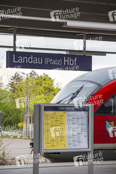 Der Regionalbahnbahnhof Landau (Pfalz) Hauptbahnhof liegt im Verkehrsverbund Rhein-Neckar. Landau, 16.04.2021