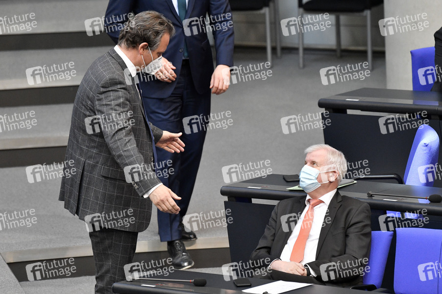Günter Krings und Horst Seehofer in der 218. Sitzung des Deutschen Bundestages im Reichstagsgebäude. Berlin, 25.03.2021