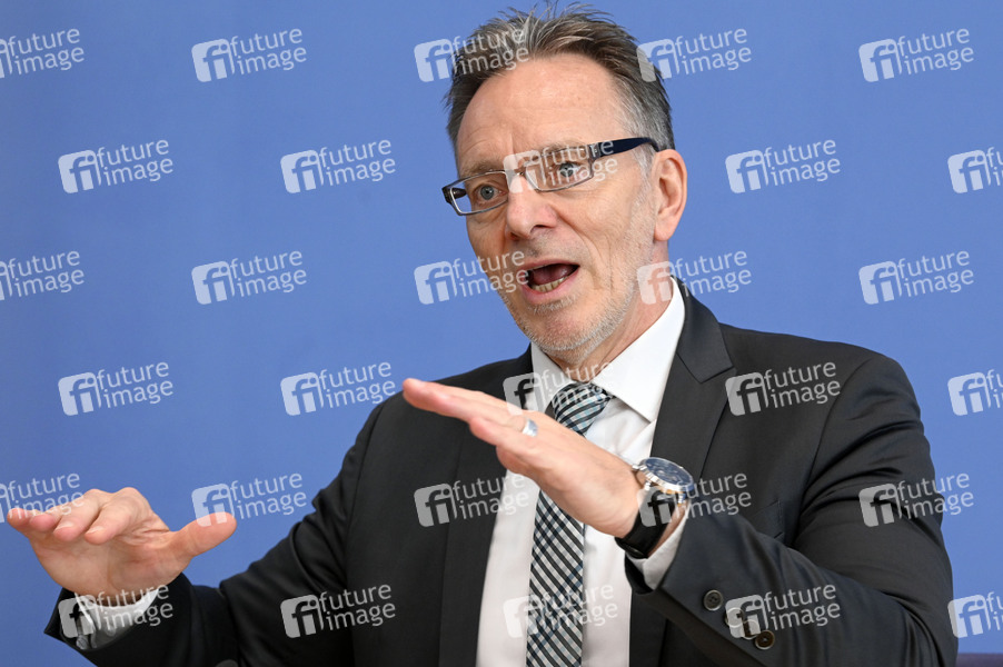Holger Münch bei der Bundespressekonferenz zur Sicherheit und Kriminalität in Deutschland (SKID) im Haus der Bundespressekonferenz. Berlin, 08.11.2022