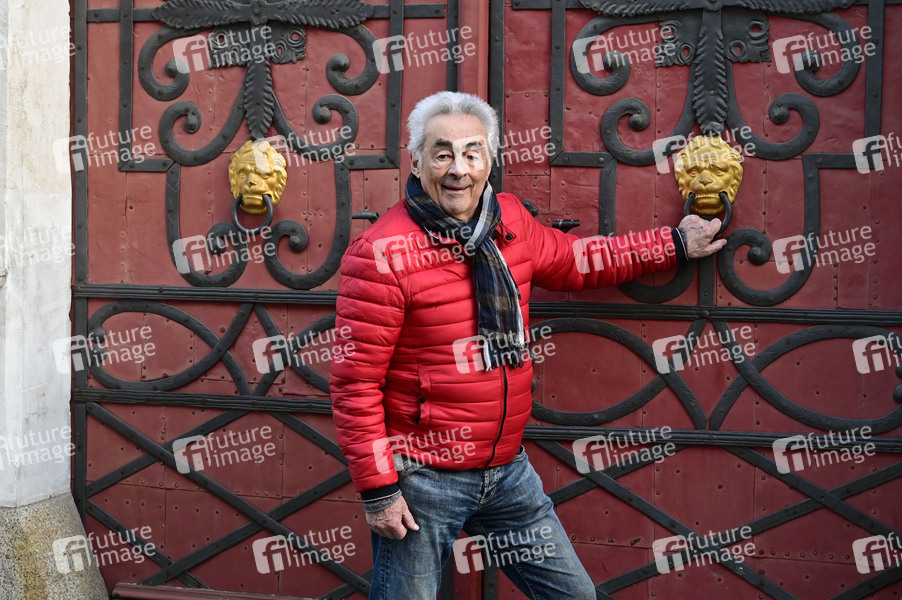 Giso Weißbach beim Spaziergang zum Set von 'Sachsens Glanz und Preußens Gloria'. Giso Weißbach feiert im nächsten Jahr sein 60-jähriges Bühnenjubiläum. Der gebürtige Erzgebirger kehrte am 08.03.2024 an das Set des sechsteiligen Fernsehfilms 'Sachsens Glanz und Preußens Gloria' zurück, welcher auf historische Ereignisse der Jahre 1697 bis 1763 zurückgeht. Die Literaturverfilmung, basierend auf dem Roman von Józef Ignacy Kraszewski, wurde unter Regie von Hans-Joachim Kasprzik in den Jahren 1982-1985 produziert. Die Szene im Siebenjährigen Krieg, in der Giso Weißbach alias Leutnant Sigismund von Miltitz um die Gunst seiner großen Liebe Komtesse Pepita von Nostitz, gespielt von Ulrike Kunze (Mai), wirbt, wurde 1985 vor dem heutigen Kulturhistorischen Museum auf der Neißstrasse in Görlitz gedreht. Görlitz, 08.03.2024
