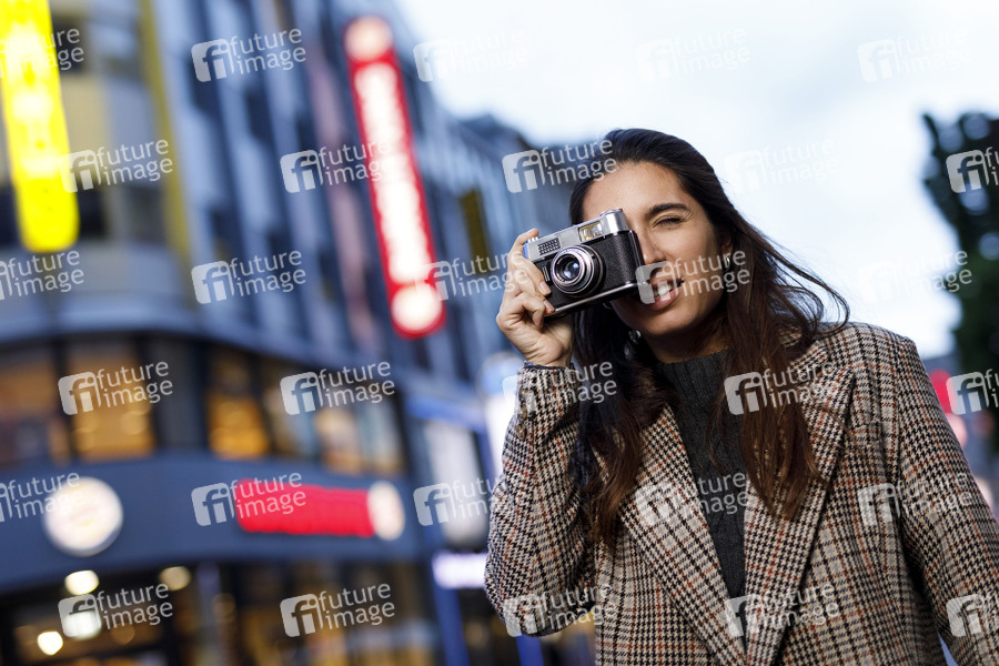 Eine Fotografin macht Bilder im öffentlichen Raum. Köln, 09.05.2019