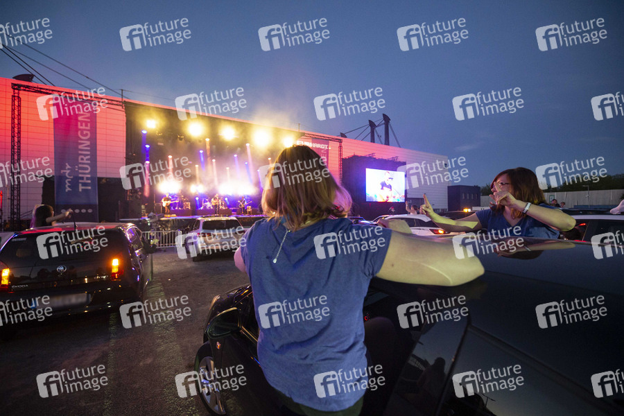 Revolverheld-Fans bei einem Autokonzert an der Messe. Erfurt, 21.05.2020