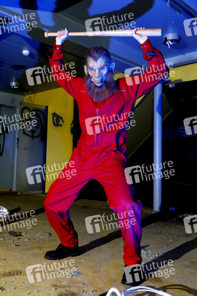 GEEK ART - Bodypainting meets SciFi, Fantasy and more: 'Planet der Affen' Photoshooting mit Model Paul als Schimpanse auf dem Expo-Gelände. Hannover, 02.01.2019 - Ein Projekt des Fotografen Tschiponnique Skupin und des Bodypainters und Transformakers Enrico Lein