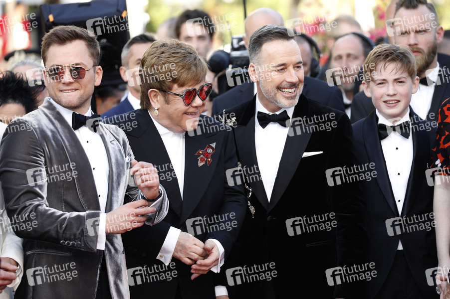 Taron Egerton, Elton John, James Furnish und Kit Connor bei der Premiere von 'Rocketman' auf dem Festival de Cannes 2019 / 72. Internationale Filmfestspiele von Cannes im Palais des Festivals. Cannes, 16.05.2019