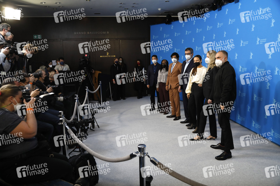 BERLIN, GERMANY - FEBRUARY 10, 2022: Ryusuke Hamaguchi, Tsitsi Dangarembga, M. Night Shyamalan, Said Ben Said, Anne Zohra Berrached, Connie Nielsen, Karim Ainouz arrives at the International Jury photocall during the 72nd Berlin International Film Festival at Berlinale Palace on February 10, 2022 in Berlin, Germany. Photo by John Rasimus
