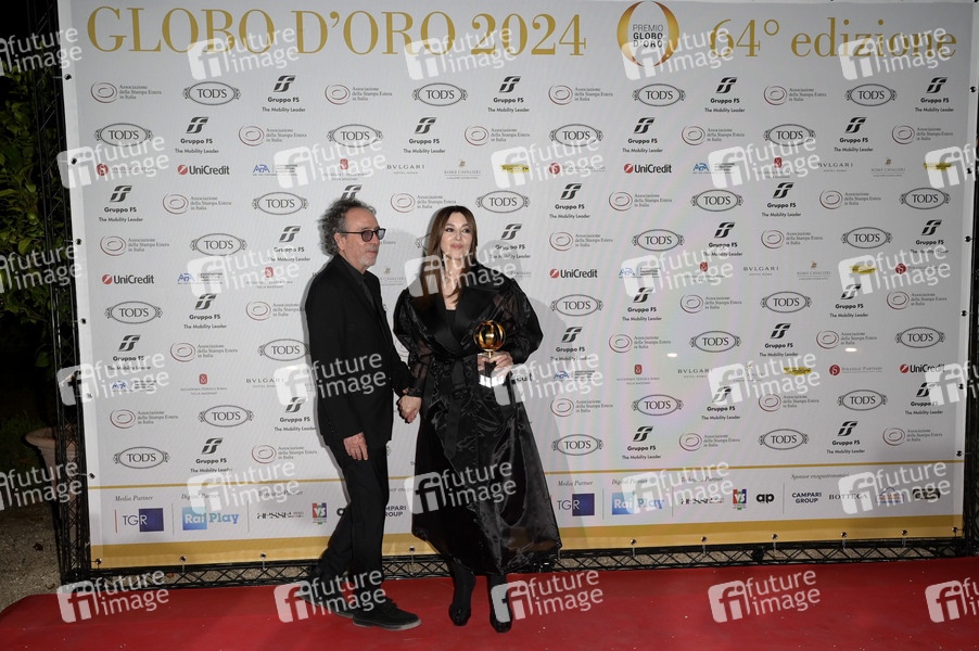 Tim Burton mit Partnerin Monica Bellucci bei der 64. Verleihung der Globi d'Oro 2024 in der Accademia Tedesca di Roma Villa Massimo. Rom, 03.07.2024