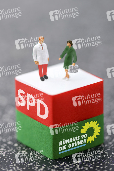 Sondierungsgespräche zwischen SPD und Bündnis 90/Die Grünen nach der Bundestagswahl 2021 zur Bildung einer neuen Bundesregierung. (Symbolfoto, Themenfoto, Fotomontage)