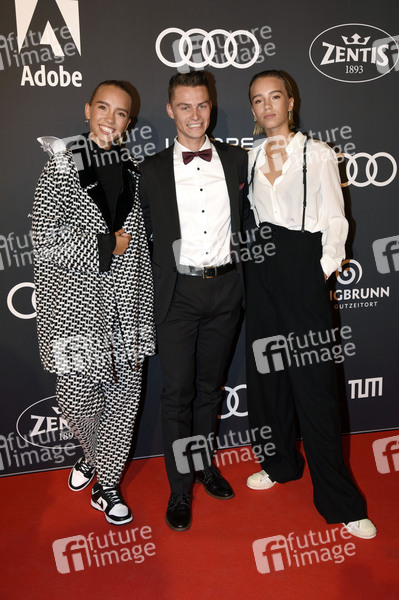 Lisa Mantler, Johannes Lamparter und Lena Mantler bei der 14. Verleihung des Audi Generation Award 2021 in der Allianz Arena. München, 06.10.2021