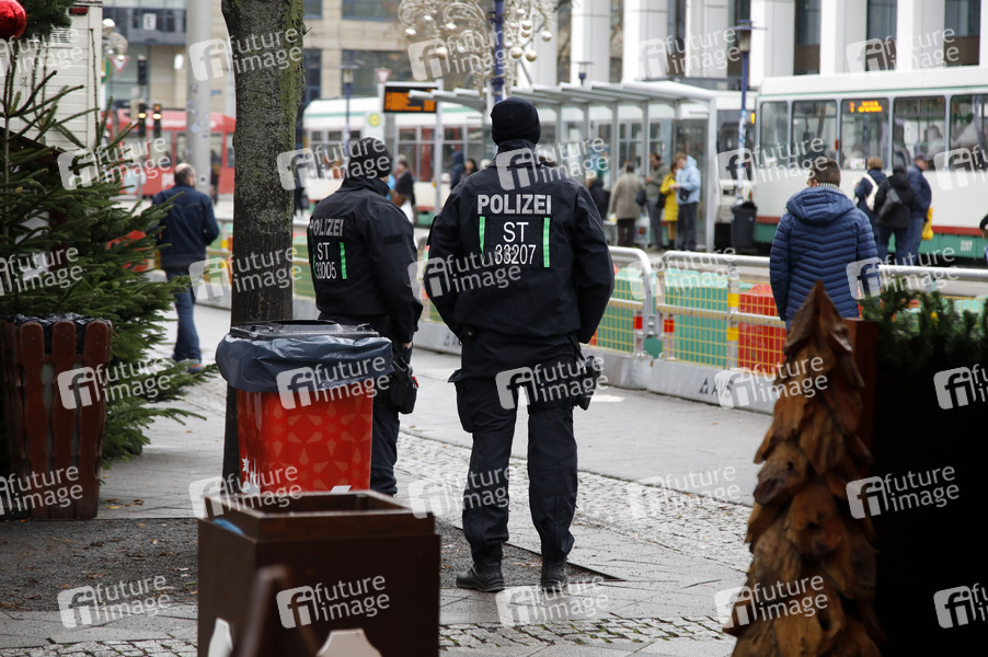Magdeburger Weihnachtsmarkt, Betonsperren, Sicherheitsmaßnahmen, Gefährdung von Weihnachtsmärkten, Adventsmarkt, Advent, Adventszeit, Brauchtum, Buden, Christbaum, Christbäume, Christbaumschmuck, Christkind, City-Weihnachtsmarkt, Fest der Liebe, Frohes Fest, Heiligabend, Heilige Nacht, Lichter, Lichterbaum, Lichterbäume, Lichterkette, Lichterketten, Merry Christmas, Stände, Tannenbaum, Tannenbaumschmuck, Tradition, Weihnachtssterne, Weihnacht, Weihnachten, Weihnachtsatmosphäre, Weihnachtsbaum, Weihnachtsbeleuchtung, Weihnachtsdeko, Weihnachtsferien, Weihnachtsfest, Weihnachtsgeschenke, Weihnachtsmarkt, Weihnachtsmärkte, Weihnachtsschmuck, Weihnachtsstimmung, Weihnachtszeit, Xmas, X-Mas, Weihnachts-Rummel, Polizisten, Symbolbild, Themenbild, Symbolfoto, Themenfoto