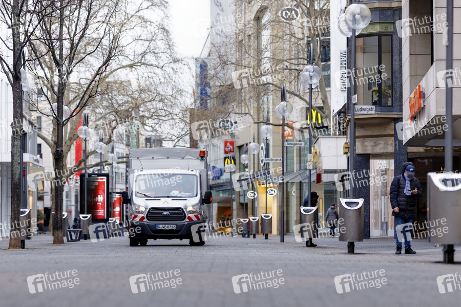 Ein Reinigungsfahrzeug der AWB in der Kölner Schildergasse. Köln, 31.03.2020
