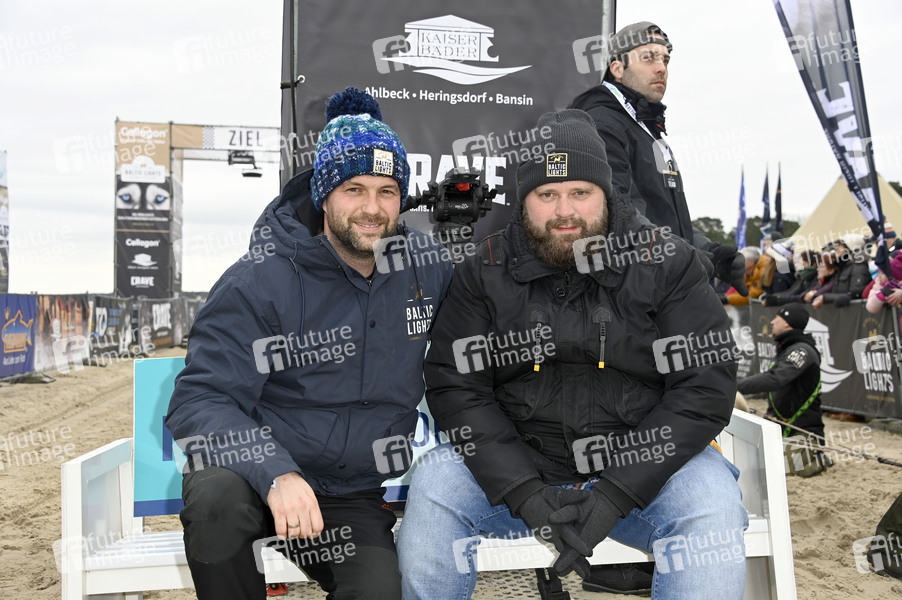 Matthias Killing und Antoine Monot jr. beim Baltic Lights 2022 Charity-Hunderennen zu Gunsten der Welthungerhilfe zwischen der Seebrücke Ahlbeck und der Seebrücke Heringsdorf. Heringsdorf, 06.03.2022