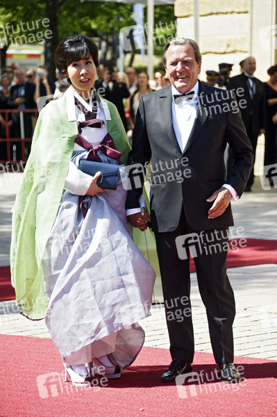 Politiker, 1999-2004 Vorsitzender der SPD, 1990-1998 Ministerpräsident von Niedersachsen, 1998-2005 der siebte Bundeskanzler der Bundesrepublik Deutschland, Prominenz, Celebrity, Celebrities, Premiere, Roter Teppich, Ankunft, Entertainment, Unterhaltung, Kultur, Konzert, Musikfestival, Klassik, Oper, Bayreuther Festspiele