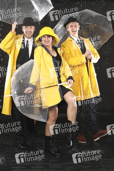Fotoshooting, Unterhaltung, Entertainment, Kultur, Singin' in the Rain, Singing in the Rain, Musical, Regen, Wetter, Regenschauer, Nieselregen, Platzregen, Niederschlag, Gewitter, Wasser, Wetterprognose, Wettervorhersage, Regenschirn, Schirm, Regenjacke, Südwester, Regenkleidung, Regenwetter, Symbolbild, Symbolfoto