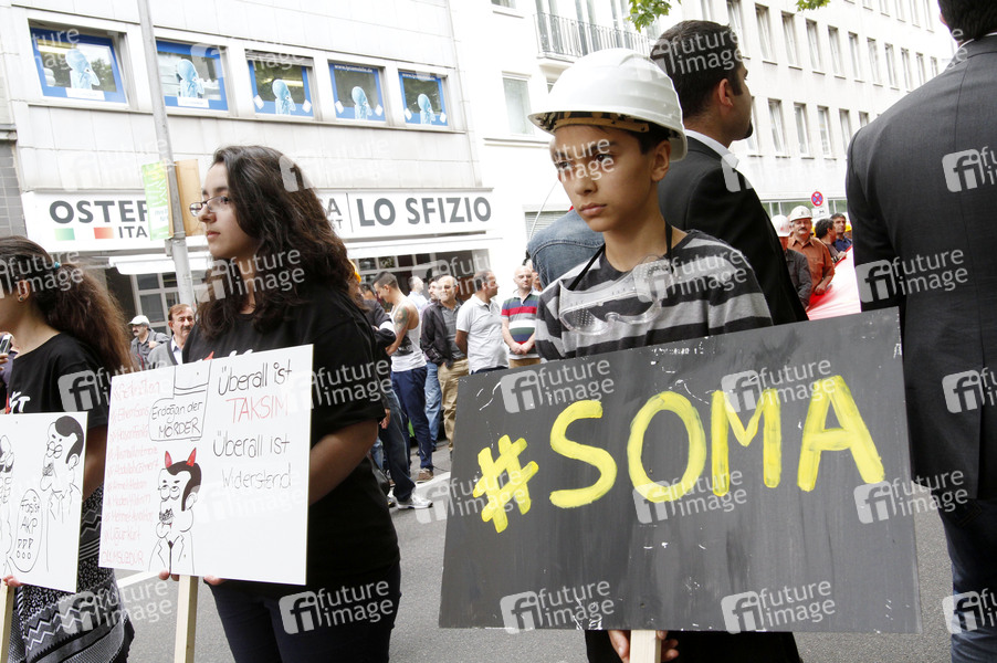 Zehntausende Gegendemonstranten haben sich auf dem Kölner Ebertplatz versammelt, um gegen den Auftritt des türkischen Ministerpräsidenten Recep Tayyip Erdogan zu protestieren. Köln, 24.05.2014