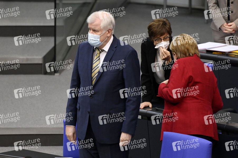 Horst Seehofer, Annegret Kramp-Karrenbauer und Angela Merkel in der 238. Sitzung des Deutschen Bundestages im Reichstagsgebäude. Berlin, 25.08.2021