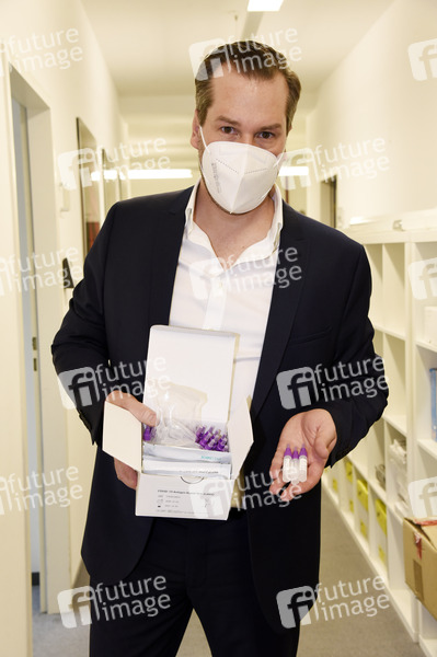 Geschäftsführer Jörg Rath bei der Prüfung von Corona-Schnelltests. Seine Firma Baumgartner & Rath GmbH Hightech Unternehmen beschäftigt sich u.a. mit der Produktion, der Qualitätsprüfung und dem Handel von FFP2, FFP3-Schutzmasken sowie dem Vertrieb von Covid-19-Schnelltests, Schutzkleidung und Schutzmasken. München, 18.01.2021