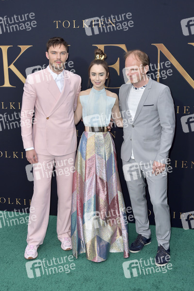 Nicholas Hoult, Lily Collins und Dome Karukoski beim Special Screening des Kinofilms 'Tolkien' im Regency Westwood Village Theater. Los Angeles, 08.05.2019