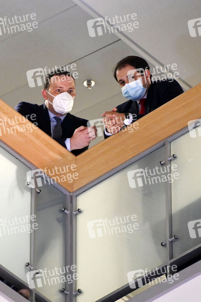Jens Spahn und Nathanael Liminski bei der Wahlparty der CDU zur Bundestagswahl 2021 im Konrad-Adenauer-Haus. Berlin, 26.09.2021