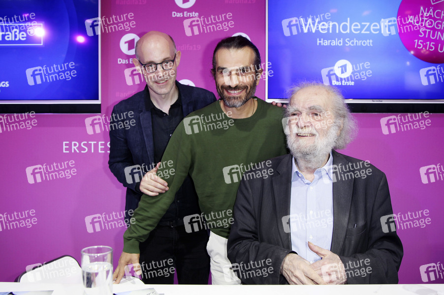 Philipp Neubauer, Hermes Hodolides und Kostas Papanastasiou live bei der IFA 2019 auf der ARD Bühne. Berlin, 08.09.2019