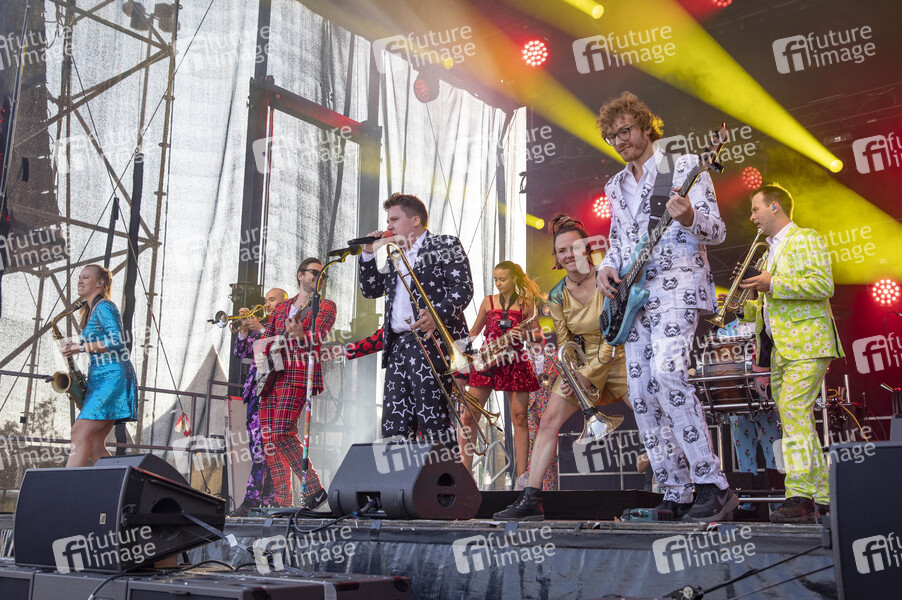 Musiker, Musikerinnen, Brass-Band, Performanceband, Musik, Konzert, Auftritt, Bühne, Stage, live, Unterhaltung, Entertainment, Kultur, Open Air