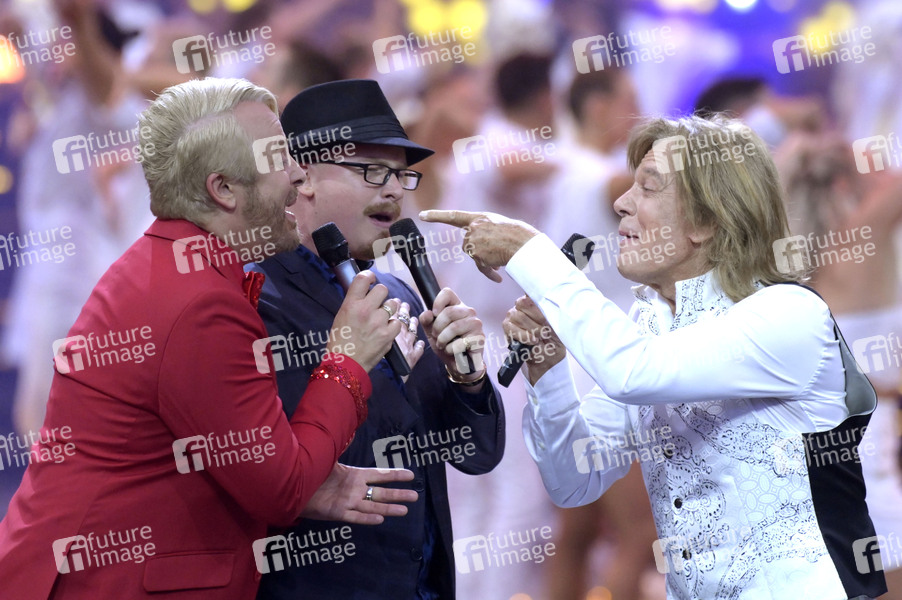 Ross Antony, Art Garfunkel Jr. und Jürgen Drews in der TV-Show 'Das große Schlagercomeback 2022' in der Glashalle der Leipziger Messe. Leipzig, 23.07.2022